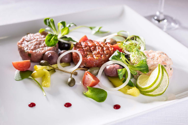 Pour les amateurs de poisson, de viande et végétariens. Menu snack polyvalent l'après-midi.